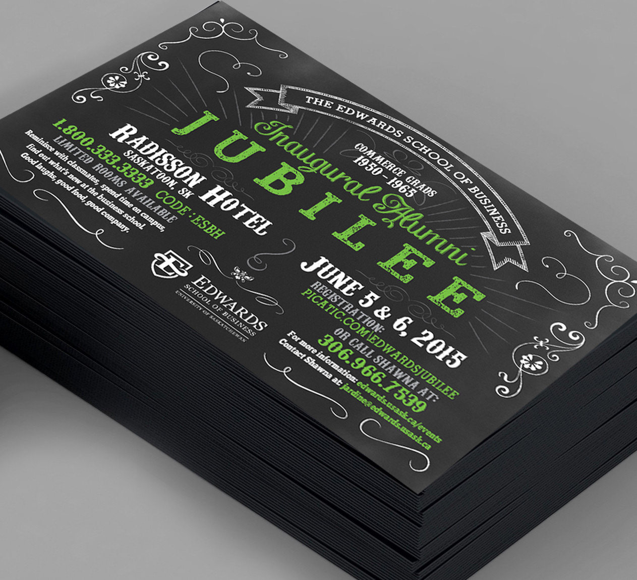 Postcard and invitation design for a reunion for Edwards School of Business alumni.